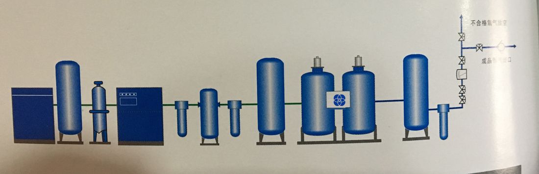 由空气缓冲罐及附属阀门仪表组成。空气缓冲罐是降低气流脉动,起缓冲作用;从而减少系统压力的波动,使压缩空气能平稳地通过压缩空气净化组件以便充分去除油、水、尘等杂质,减少了氧氮分离系统的负荷。同时 , 也为氧氮分离系统在进行吸附塔工作切换时,提供短时间内迅速升压所需的大量压缩空气,不仅使吸附塔内压力很快上升到工作压力,而且还保证了设备可靠稳定的运行。